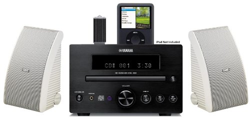 Yamaha Micro Receiver Sound System with Integrated iPod Docking Station, High Quality CD Player, FM Radio with 30 Preset Stations, Flash Drive USB Port, Remote Control, All Weather Indoor / Outdoor Speakers (Speakers are White) & 50ft 16 AWG Speaker Wire Review