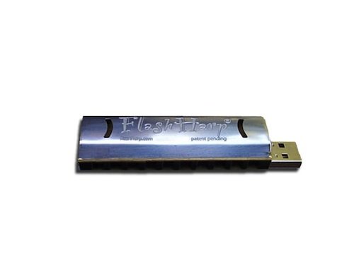 Unlike other harmonicas that simply play, FlashHarp is also a fully functional USB flash drive so it can play 1,001 more roles. Flash drive can store all types of digital files including music, videos, documents, addresses, pictures, etc. FlashHarp is handmade in Riverside, IL, using components from industry-leading manufacturers. Gizmodo called the 4GB model, "4GBs of musical goodness." Harmonica info: Standard 10-hole, diatonic type harmonica in key of "C;" Plastic comb won't warp (like professional players prefer); Brass reeds and Stainless steel cover plates. Flash drive technical data: Full compatibility with USB 1.1 and 2.0; Functions like another hard drive; Supports password protection; No driver needed for most operating systems; More than 10 years data retention. Dimensions (includes harmonica and USB plug): 3.2 inches long x .875 inches wide x .7 inches high. Pre-loaded 10-minute QuickTime video harmonica lesson is taught by The Backyard Harmonica Teacher and includes tab-sheet .pdf. But even if you never master the art of playing the world's most portable musical instrument--the harmonica--you'll never have to throw the FlashHarp® in the back of a drawer because it has so many convenient uses as a flash drive.