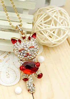 Check Out Full Water Diamond Crystal Red Lucky Cat 8GB Necklace Style USB Flash Drive